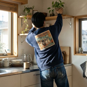 力の抜けた日常にこそ似合うトレーナーです。背中で語るデザインだから、すれ違う人がクスッと笑ってくれる——そんな瞬間を楽しめます。