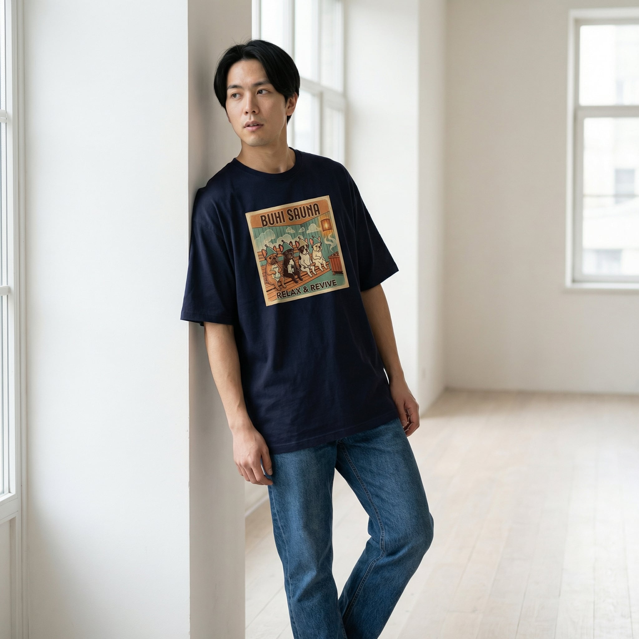 BUHI SAUNAビックシルエットTシャツ(Navy)