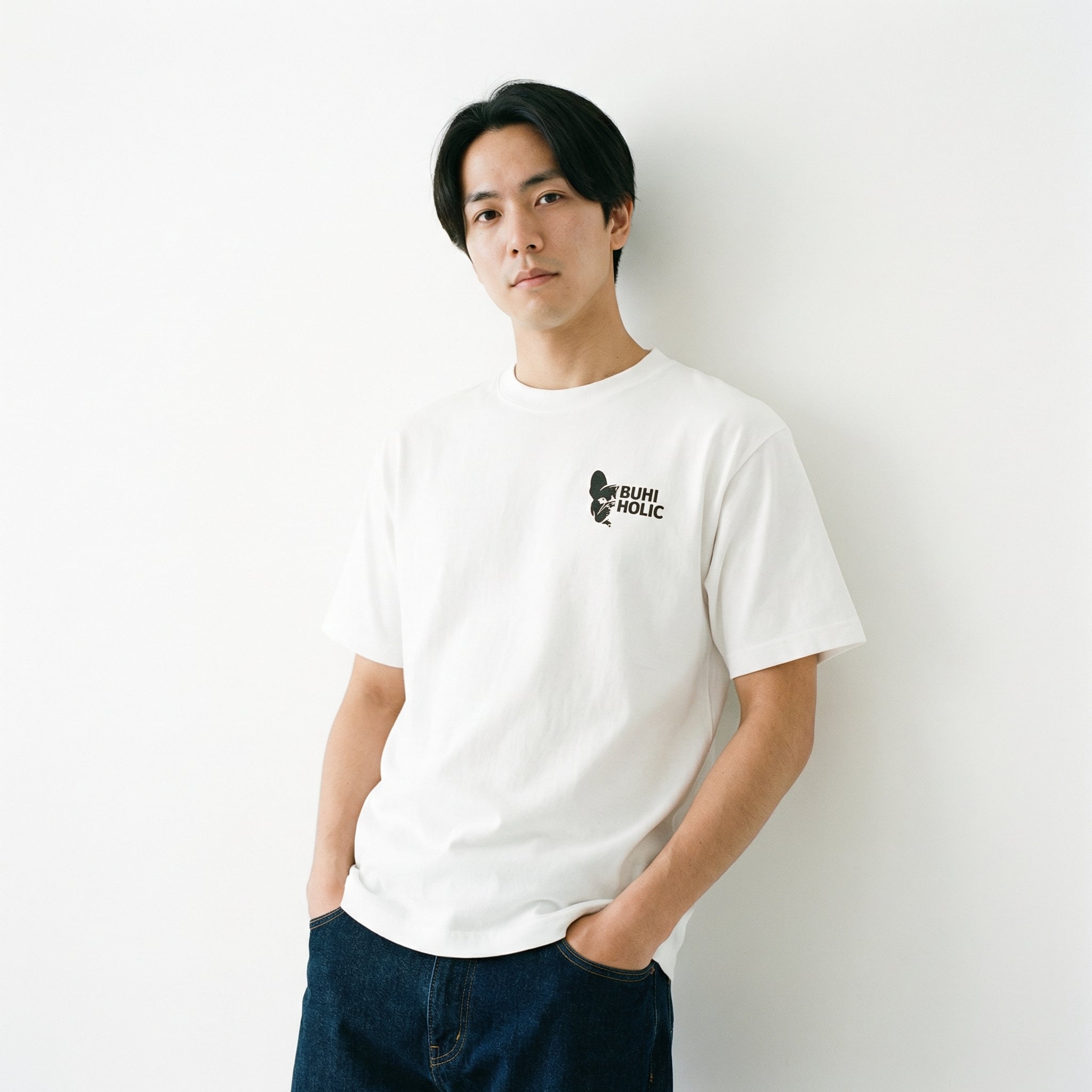 デザイン:左胸にBUHIシンボルロゴ。主張しすぎず、わかる人にはわかるミニマルな配置です。
