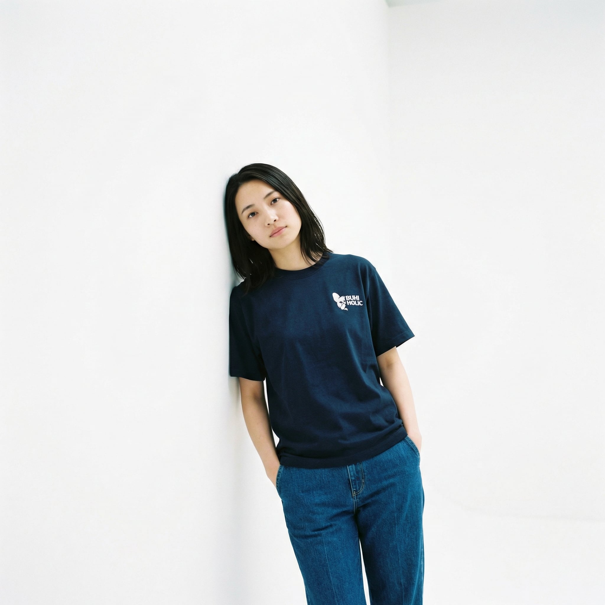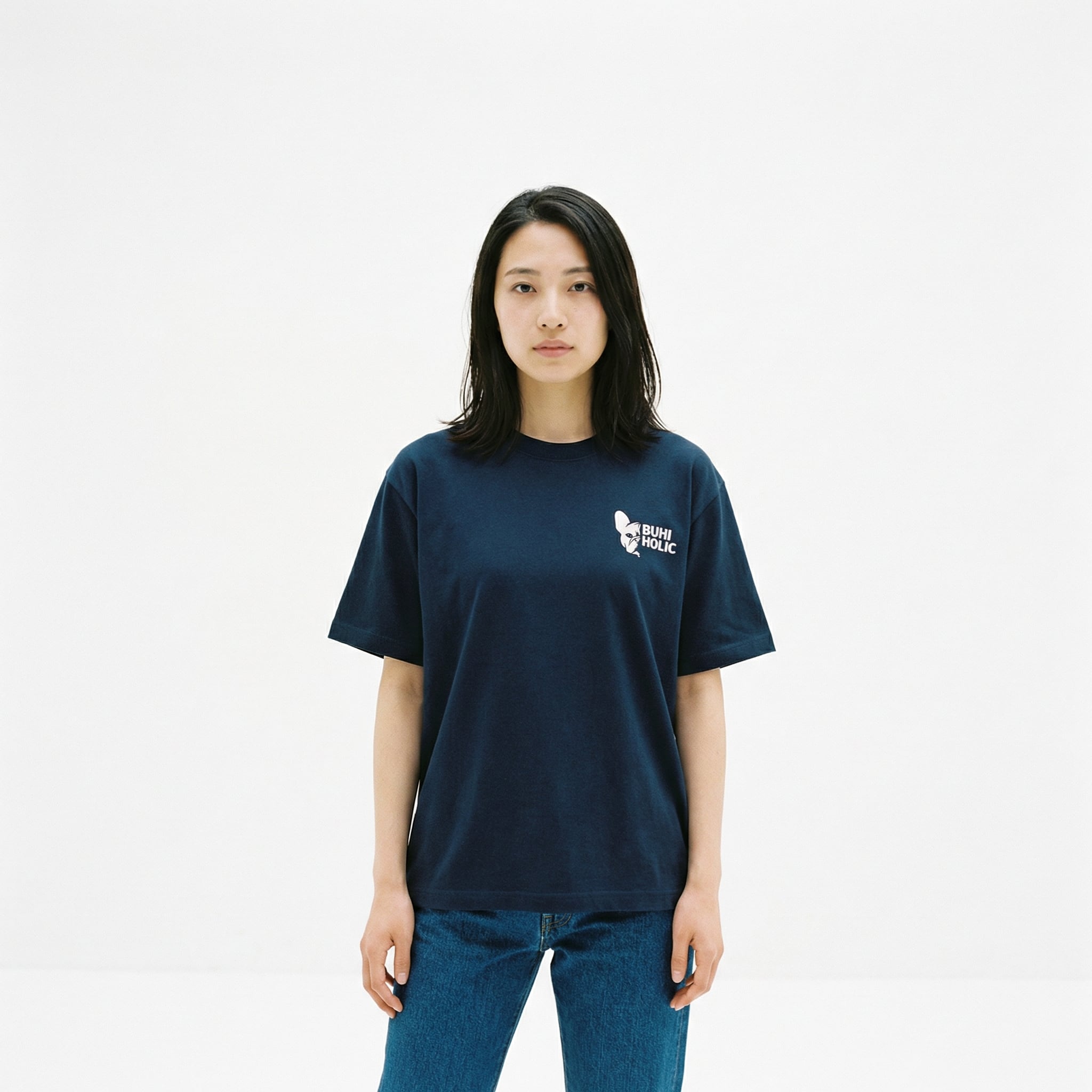 デザイン:左胸にBUHIシンボルロゴ。主張しすぎず、わかる人にはわかるミニマルな配置です。