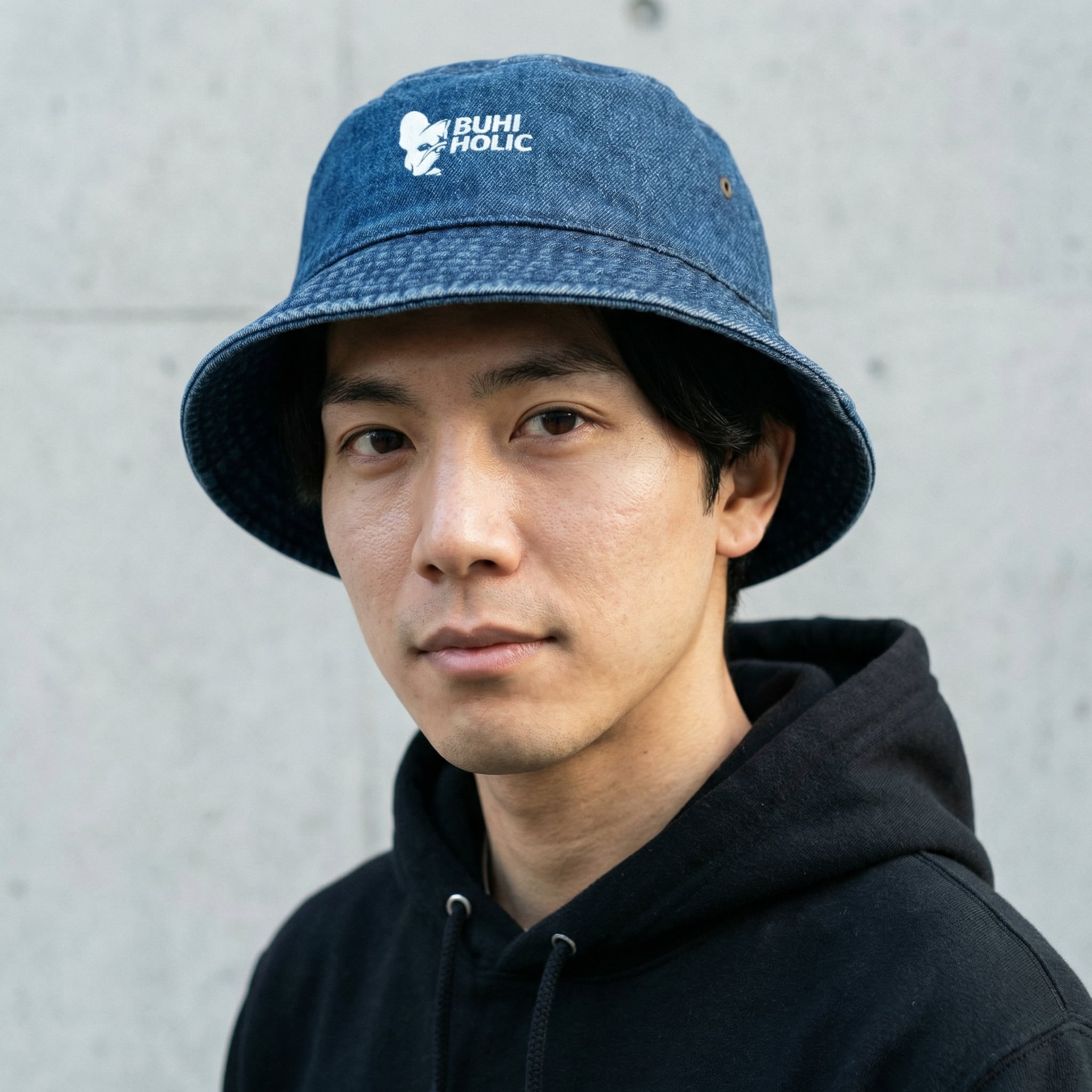 愛犬との散歩に被っていくだけで、いつものコーディネートにBUHIHOLICのアイデンティティが加わるデニムバケットハット。