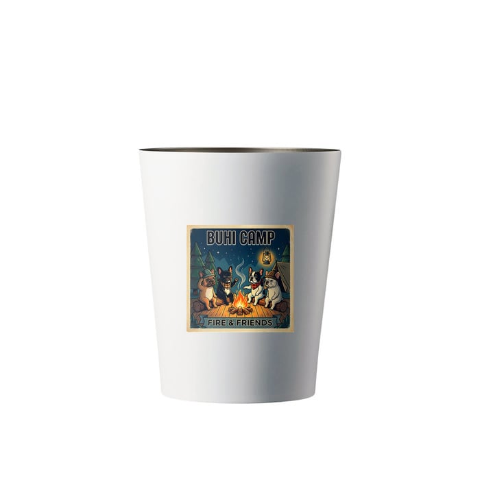 BUHI CAMPシリーズの「FIRE & FRIENDS」イラストをあしらったサーモタンブラー。コンビニコーヒーのカップがそのまま入るカップホルダー機能付きで、保冷・保温に優れた真空二重構造。飲み頃の温度を長くキープします。