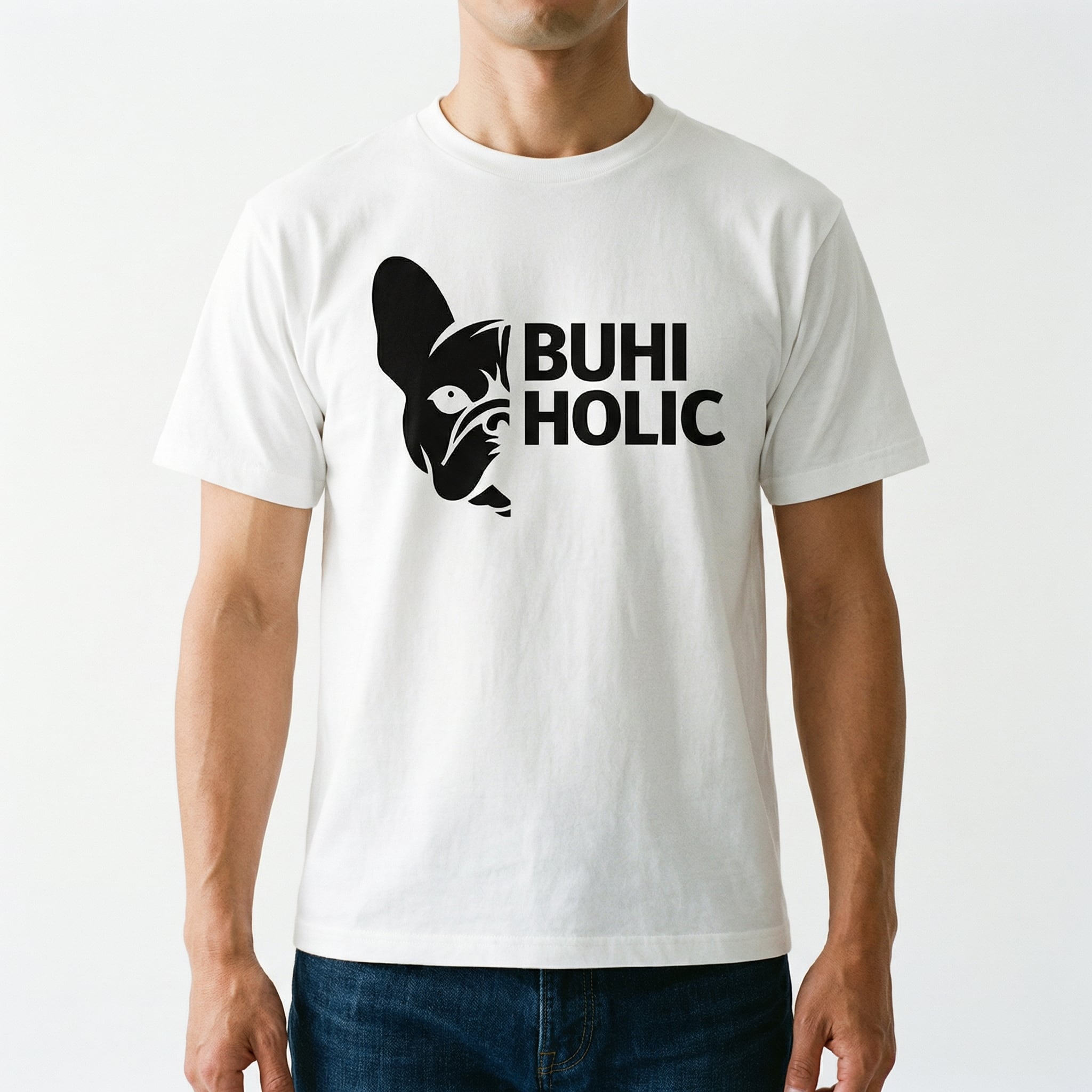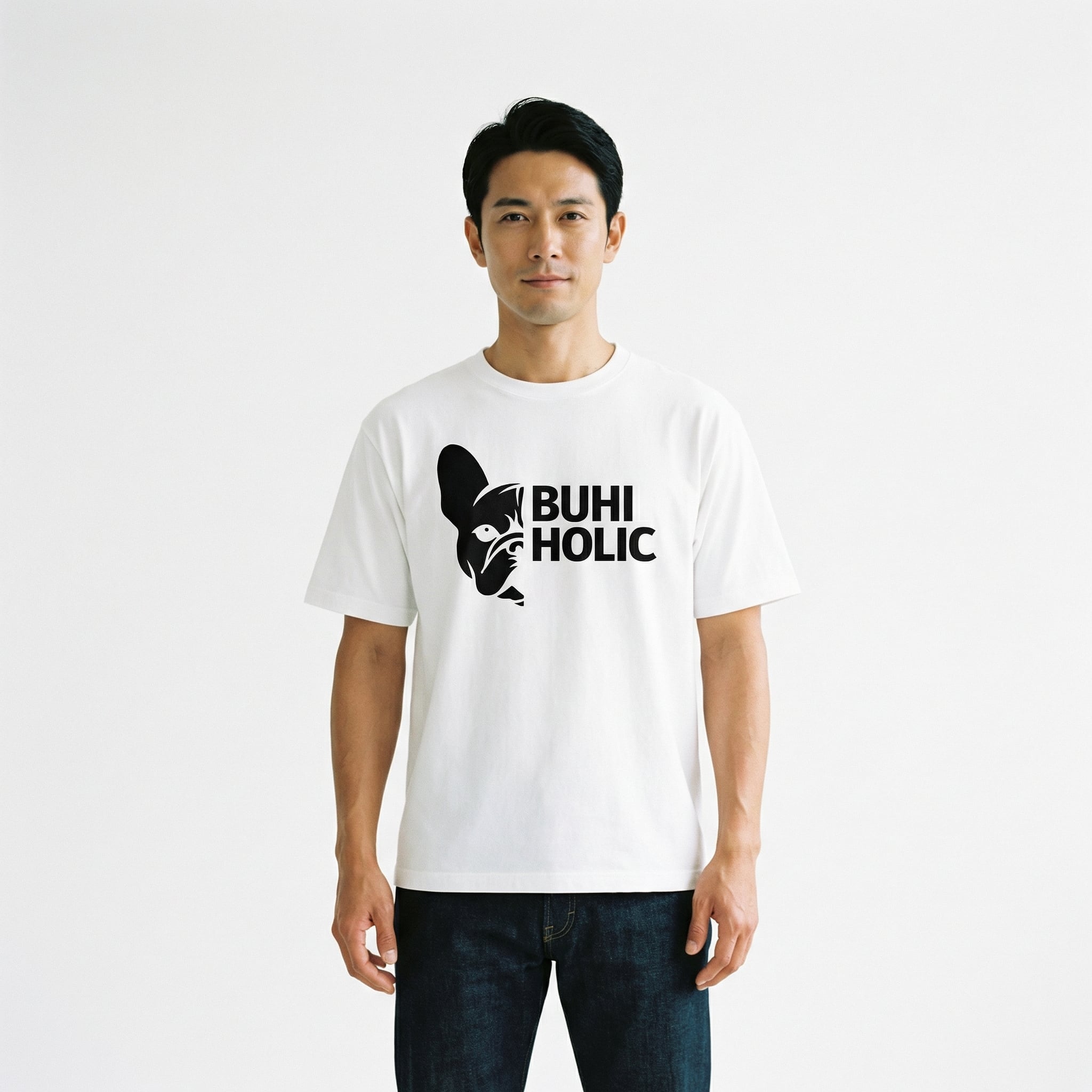 フレンチブルドッグのハーフフェイスとブランドロゴを大胆にあしらったビッグシルエットTシャツ。