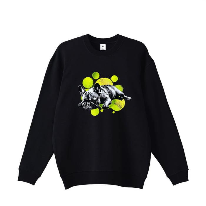 コットン100%のパイル生地を使用。吸水性と伸縮性に優れ、肌触りの良さが長時間の着用でも続きます。程よい厚みのあるスタンダードシルエットで、1枚でもジャケットのインナーとしても着回しやすいです。散歩からカフェ、休日の買い物まで、愛犬との日常にそのまま溶け込むトレーナーです。